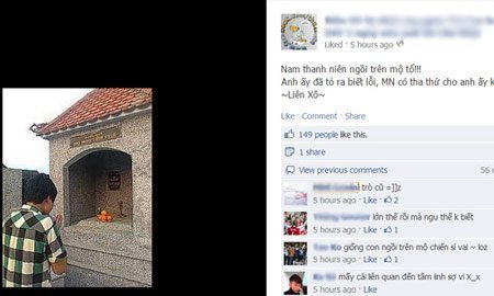 Những ngày cuối tháng 2/2013, dân mạng tiếp tục xôn xao bởi bức ảnh chàng trai ngực trần ngồi chụp ảnh ngay trên ngôi mộ của một dòng họ. Sau khi sự việc diễn ra, chàng trai đã quay lại thắp nhang xin lỗi vì hành vi bất kính của mình.