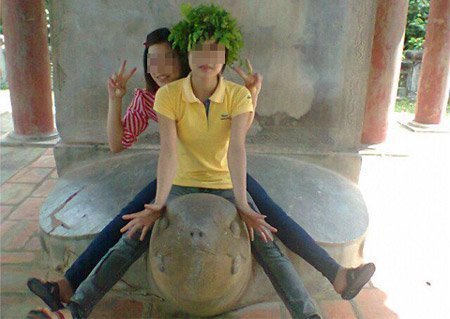 Trong năm 2012 một loạt hình ảnh từ nam sinh đến nhóm nữ sinh thản nhiên ngồi lên đầu rùa ở Văn Miếu-Quốc Tử Giám khiến nhiều người không khỏi bức xúc.