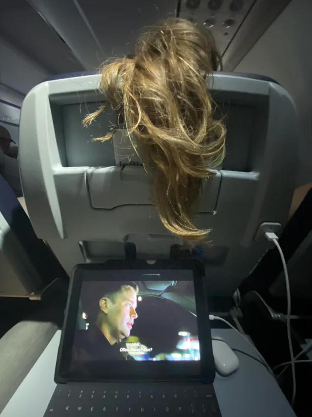Một nữ hành khách tóc dài đã không ngần ngại vắt tóc mình ra sau ghế, mặc cho sự bất tiện của hành khách phía dưới. Theo những hình ảnh được ghi lại, tóc của người này thậm chí còn chạm gần tới chiếc máy tính bảng của hành khách ngồi sau. Đáng buồn thay là cô gái đã không hề thay đổi tư thế trong suốt chuyến bay kéo dài ba giờ đồng hồ sau đó.