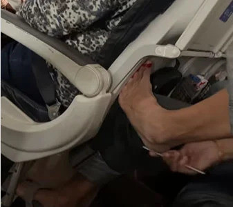 Một người phụ nữ đã bị bắt gặp khi đang cắt móng chân cho cậu con trai của mình ngay trên chuyến bay của hãng hàng không American Airlines. Ngay sau khi bức hình được lan truyền trên mạng xã hội, nhiều ý kiến chỉ trích hành vi mất vệ sinh của vị phụ huynh này ở nơi công cộng.