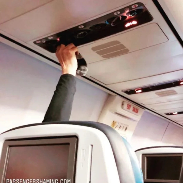 Tình yêu chưa bao giờ là xấu nhưng những hành vi thân mật quá mức ở nơi công cộng đáng bị lên án. Theo trang Passenger Shaming, một cặp vợ chồng đã không ngần ngại ngồi lên người nhau ở chung một ghế, ôm ấp khiến những hành khách còn lại không khỏi ái ngại. Rất may sau đó, tiếp viên chuyến bay đã xuất hiện để nhắc nhở họ cư xử đúng mực hơn cũng như để đảm bảo an toàn bay.