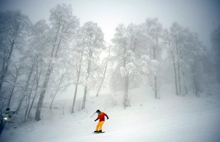 Tuyết phủ trắng khu nghỉ dưỡng Rosa Khutor ở Krasnaya Polyana, Nga. (Ảnh: Getty Images)