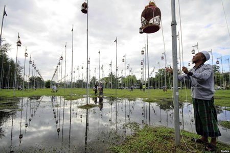 Người dân chuẩn bị cho hội thi chim tại tỉnh Yala, cách thủ đô Bangkok, Thái Lan 1.100km về phía nam.