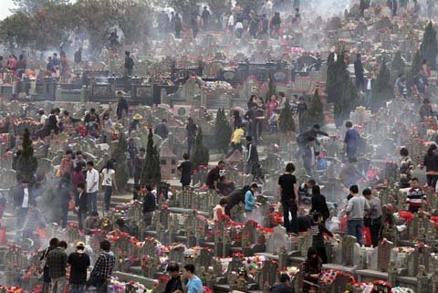 Nghĩa trang nhộn nhịp trong ngày lễ Thanh minh (Tảo mộ) ở Trung Quốc. (Ảnh: AP)