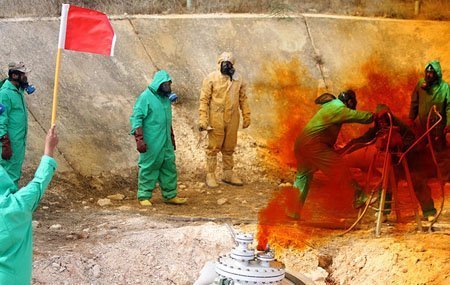Ngày 13/11, một nhóm chuyên gia Libya và các kỹ sự quân sự tháo dỡ một quả tên lửa dưới sự giám sát của Liên Hợp Quốc. Các chuyên gia đã được chỉ định để dọn sạch những hóa chất độc hại còn sót lại từ chế độ Gaddafi. (Ảnh: Xinhua Press)