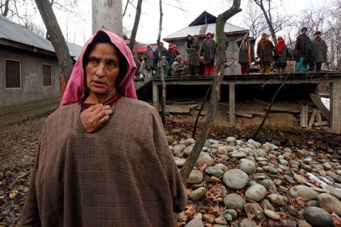 Người phụ nữ Kashimiri đang đứng gần trường bắn tại ngôi làng Woodder, nam Srinagar, Ấn Độ. (Ảnh: AP)