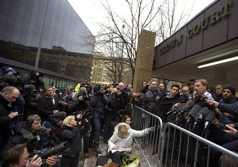 Phóng viên tích cực tác nghiệp bên ngoài tòa án Southwark, London, Anh. (Ảnh: EPA)