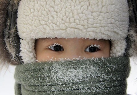 Tuyết đọng trên lông mi một bé gái tại Yakutska, Nga khi nhiệt độ hạ xuống -35 độ C.