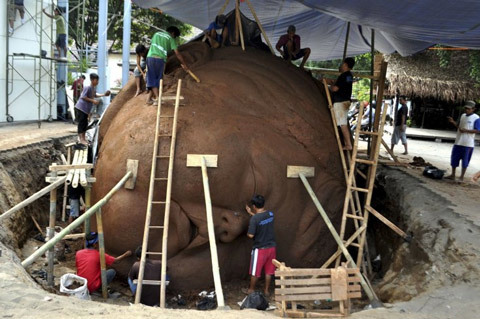 7/7, các nghệ sĩ Indonesia thi công bức tượng em bé, chuẩn bị cho liên hoan nghệ thuật Yogyakarta, Trung Java, Indonesia.