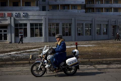 Cảnh sát giao thông tuần tra một con đường ở trung tâm Bình Nhưỡng ngày 22/2.