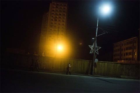Phố về đêm ở trung tâm Bình Nhưỡng ngày 21/2.