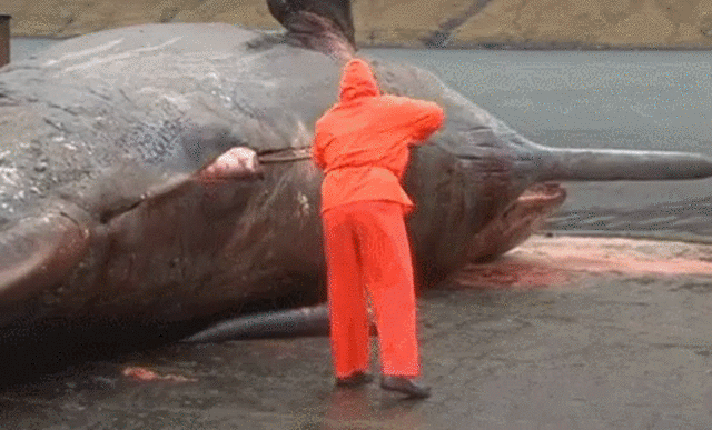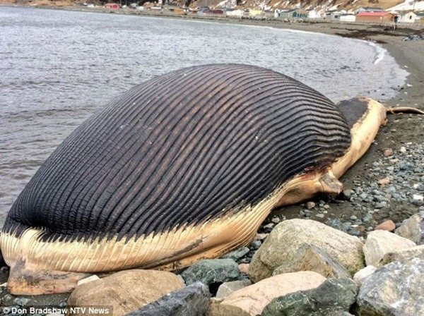 Còn đây là xác một con cá voi xanh, loài động vật khổng lồ nhất thế giới, dạt vào bờ biển. Không phải là con quái vật gớm ghiếc nào đâu.
