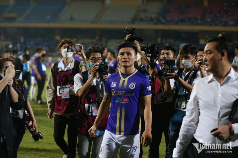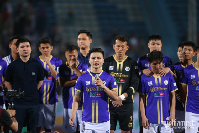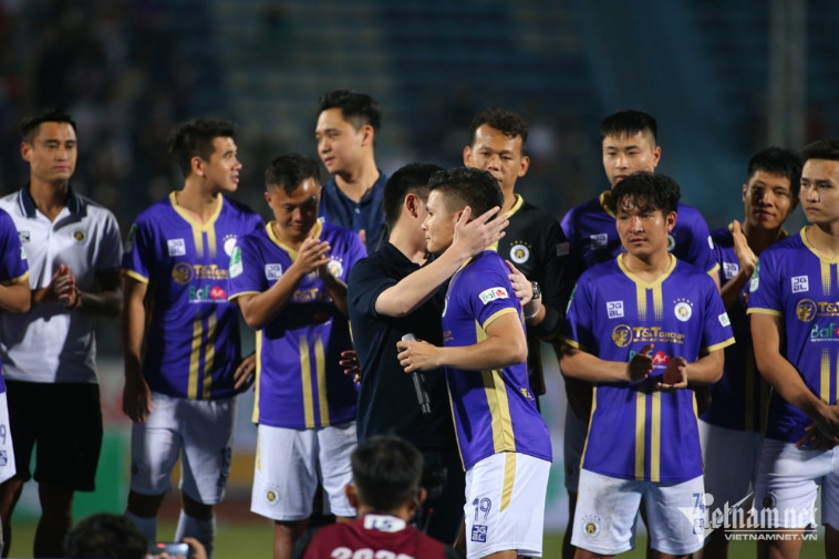Quang Hải có buổi chia tay đầy xúc động với CLB Hà Nội và các CĐV sau trận đấu cuối cùng trên SVĐ Hàng Đẫy tối 7/4.