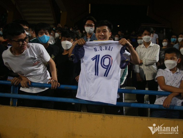 Quang Hải ra sân ở hiệp 2, trong trận đấu giữa Hà Nội và Công an Nhân dân ở vòng loại cúp Quốc gia 2022Đây là trận đấu cuối cùng trong màu áo CLB Hà Nội của Quang HảiSau trận thắng 4-0, Quang Hải đi vòng quanh sân để chào các CĐVCầu thủ sinh năm 1997 mắt đỏ hoe vì xúc độngQuang Hải là một biểu tượng ở sân Hàng ĐẫyCác CĐV hô vang tên Quang Hải“Đây là ngày đặc biệt với tôi. Hôm nay là trận đấu cuối cùng và cũng là giây phút cuối cùng tôi thi đấu cho Hà Nội FC, trong một khoảng thời gian dài sắp tới. Tôi xin cảm ơn những cổ động viên luôn ở bên. Từ khi lên đội 1, tôi được mọi người giúp đỡ rất nhiều. Vì thế, tôi không muốn nói lời tạm biệt mà là hẹn gặp lại”, Quang Hải xúc động chia sẻQuang Hải cảm ơn Chủ tịch Đỗ Vinh Quang và đặc biệt là bầu HiểnQuang Hải có nhiều năm gắn bó với đội bóng Thủ đô, đạt vô số danh hiệu tập thể và cá nhân cùng đội chủ sân Hàng ĐẫyQuang Hải hẹn gặp lại người hâm mộ thay vì nói lời tạm biệtAnh tặng áo cho các CĐVMột fan may mắn có áo của tiền vệ người Đông AnhHình ảnh cuối cùng của Quang Hải ở Hàng Đẫy