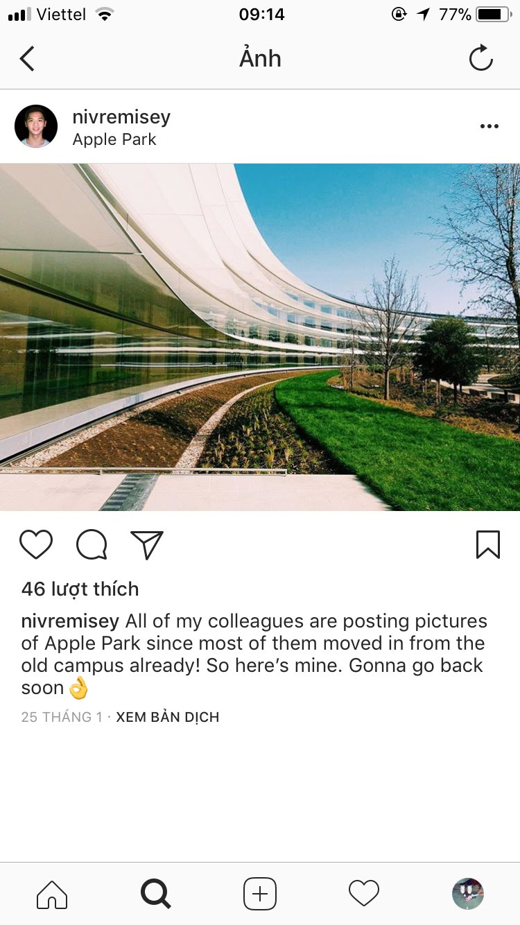 Ngoài 12.000 nhân viên của Apple bị giữ lại tại tòa nhà cũ thì những người còn lại đang dần được di chuyển vào trụ sở mới Apple Park - toà nhà có hình "chiếc nhẫn" trị giá 5 tỷ USD tại Cupertino, bang California, Mỹ. Theo báo cáo từ công ty, những nhân viên còn lại sẽ được cấp giấy phép chuyển nơi làm việc vào cuối tháng 3.