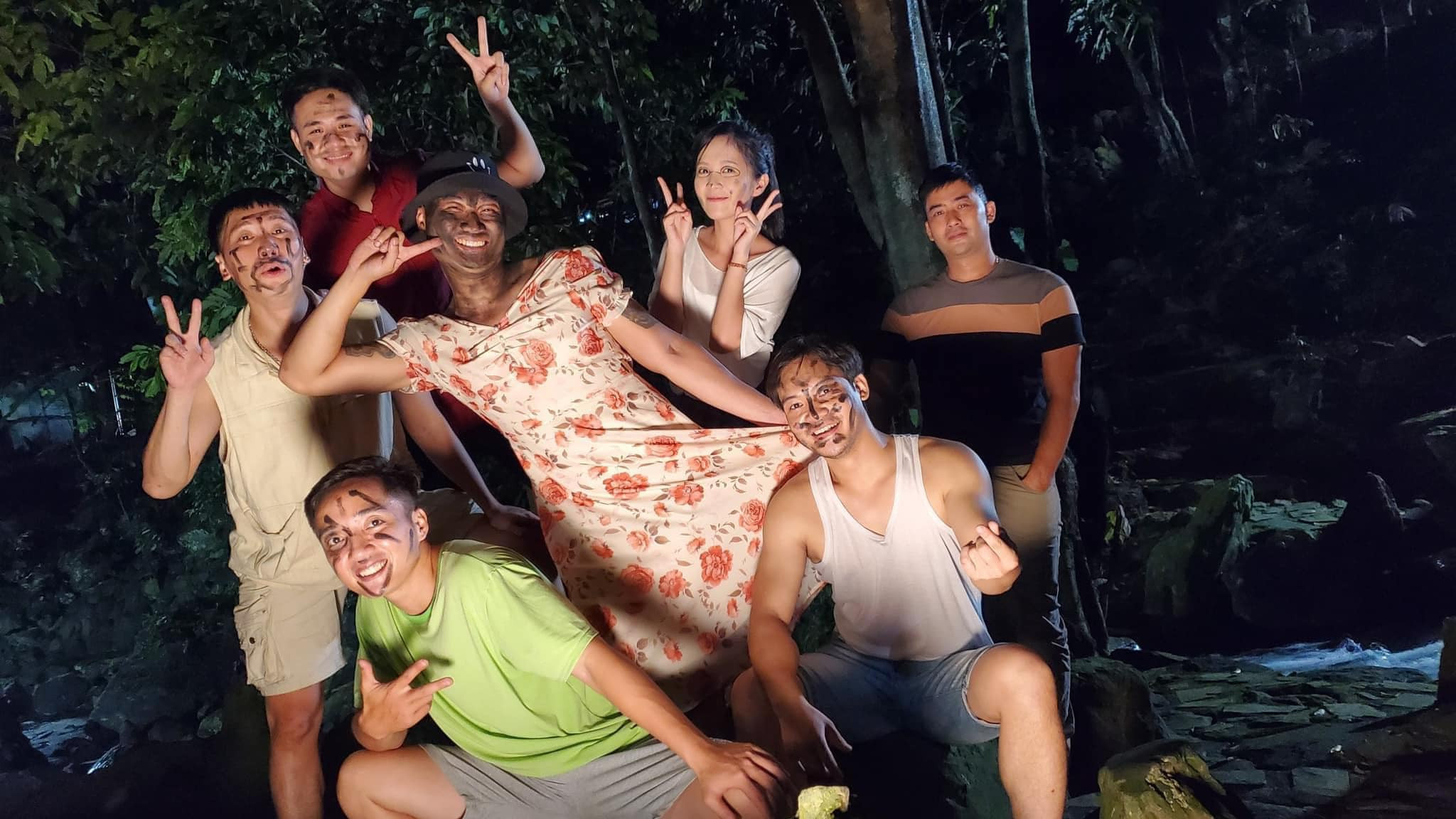 Các diễn viên tạo dáng hài hước khi kết thúc vai diễn.