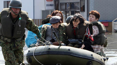 6.Dùng thuyền hơi để sơ tán người dân ở Miyagi