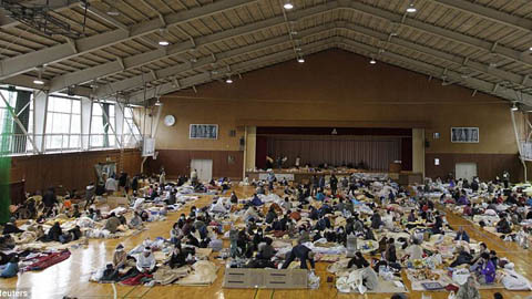 15. Những người dân được sơ tán khỏi khu vực nhà máy điện hạt nhân Fukushima đang trú tại một phòng tập thể dục ở Kawamata.