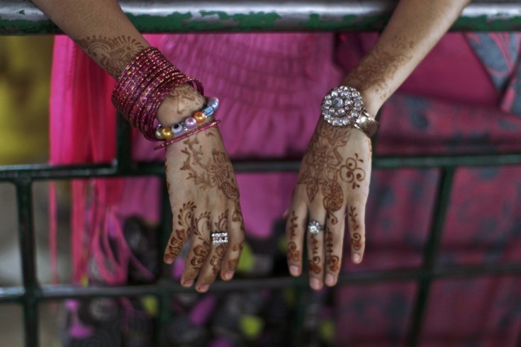 Một thiếu nữ đợi được phát lương thực nhân đạo tại Beri Iman, Islamabad, Pakistan.