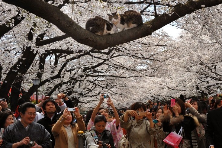 6/4, người dân Tokyo náo nức xem hoa anh đào nở ở công viên Ueno. Ảnh Nippon News