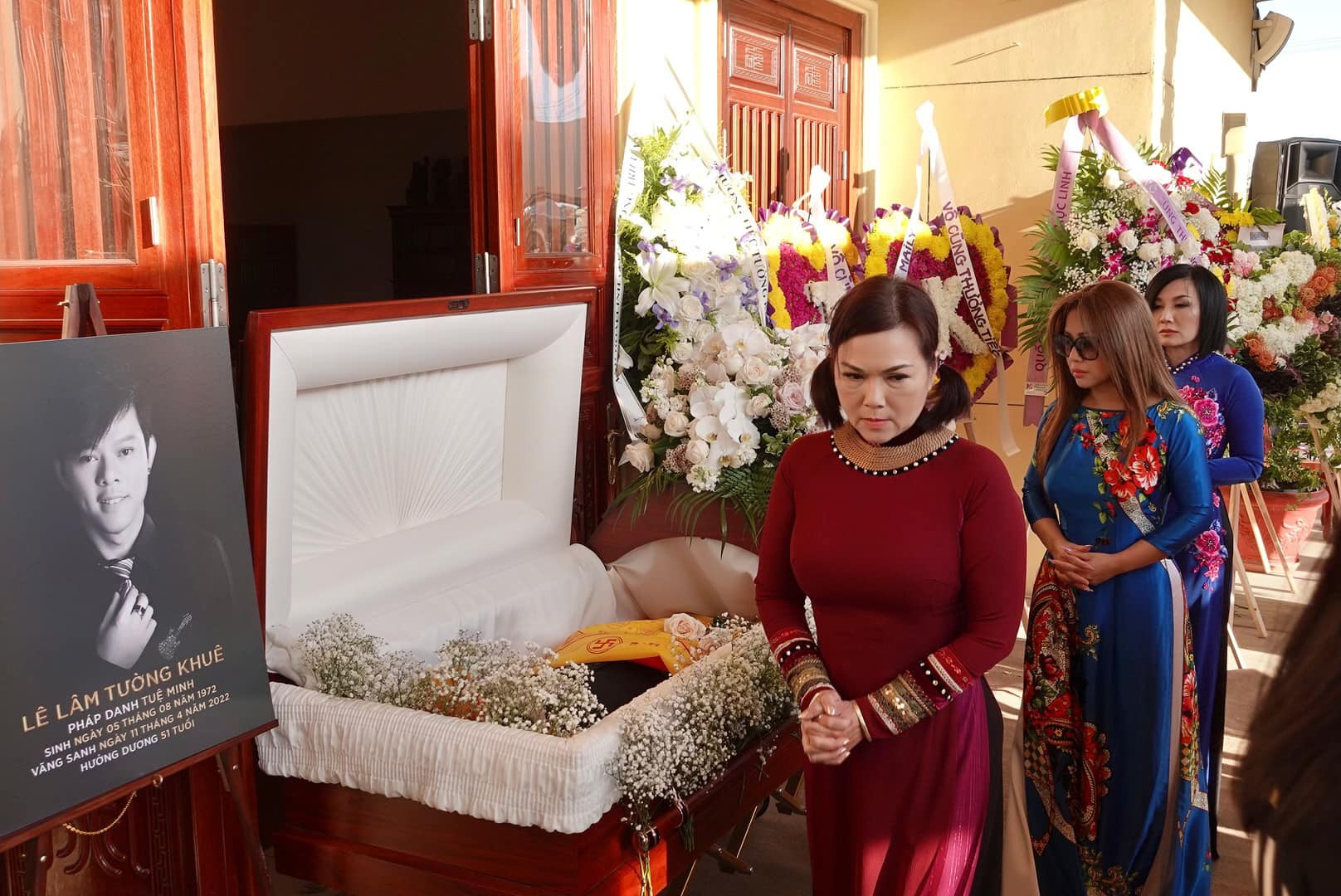 Đám tang ca sĩ, nhà thiết kế Tường Khuê - em trai ca sĩ Như Quỳnh - diễn ra tại chùa Điều Ngự, Westminster, California, Mỹ. Lễ cầu siêu diễn ra vào 14h, lễ viếng bắt đầu từ 15h và kết thúc lúc 18h30' cùng ngày 21/4 (giờ địa phương).
