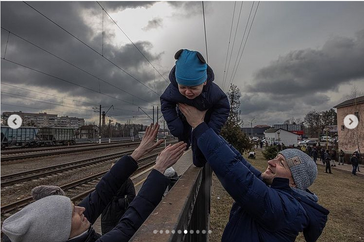 Trên Instagram cá nhân của mình, ông Zelensky đã đăng 10 tấm ảnh ghi lại những hình ảnh đầy xúc động của những người cha Ukraine. Có hình ảnh một người lính ôm hôn con trong một ga tàu điện ngầm, vốn được dùng làm nơi trú ẩn khỏi các cuộc không kích. Trong một khuôn hình khác, một cậu bé và mẹ của mình thẫn thờ nhìn ra phía cửa sổ của một toa tàu hỏa, nơi người cha nói lời tạm biệt.