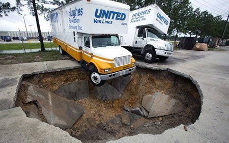 Hố tử thần xuất hiện tại bãi đỗ xe của Dịch vụ Tái định cư Hughes tại Salt Springs, Florida (Mỹ) vào tháng 6 năm 2012. (Ảnh: AP)
