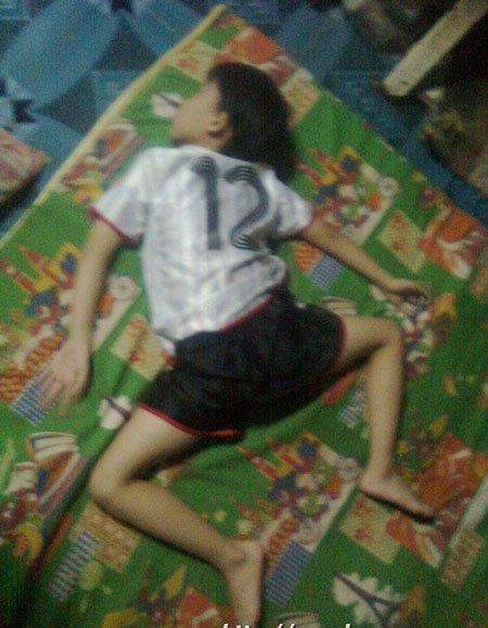 | Trót dại tè dầm, con nằm cho bố mẹ phạt ạ! |