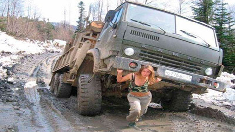 Nữ dũng sĩ nâng xe trên vai |
