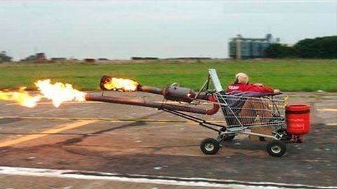 Xe chở hàng ở siêu thị nay đã được gắn động cơ tên lửa |