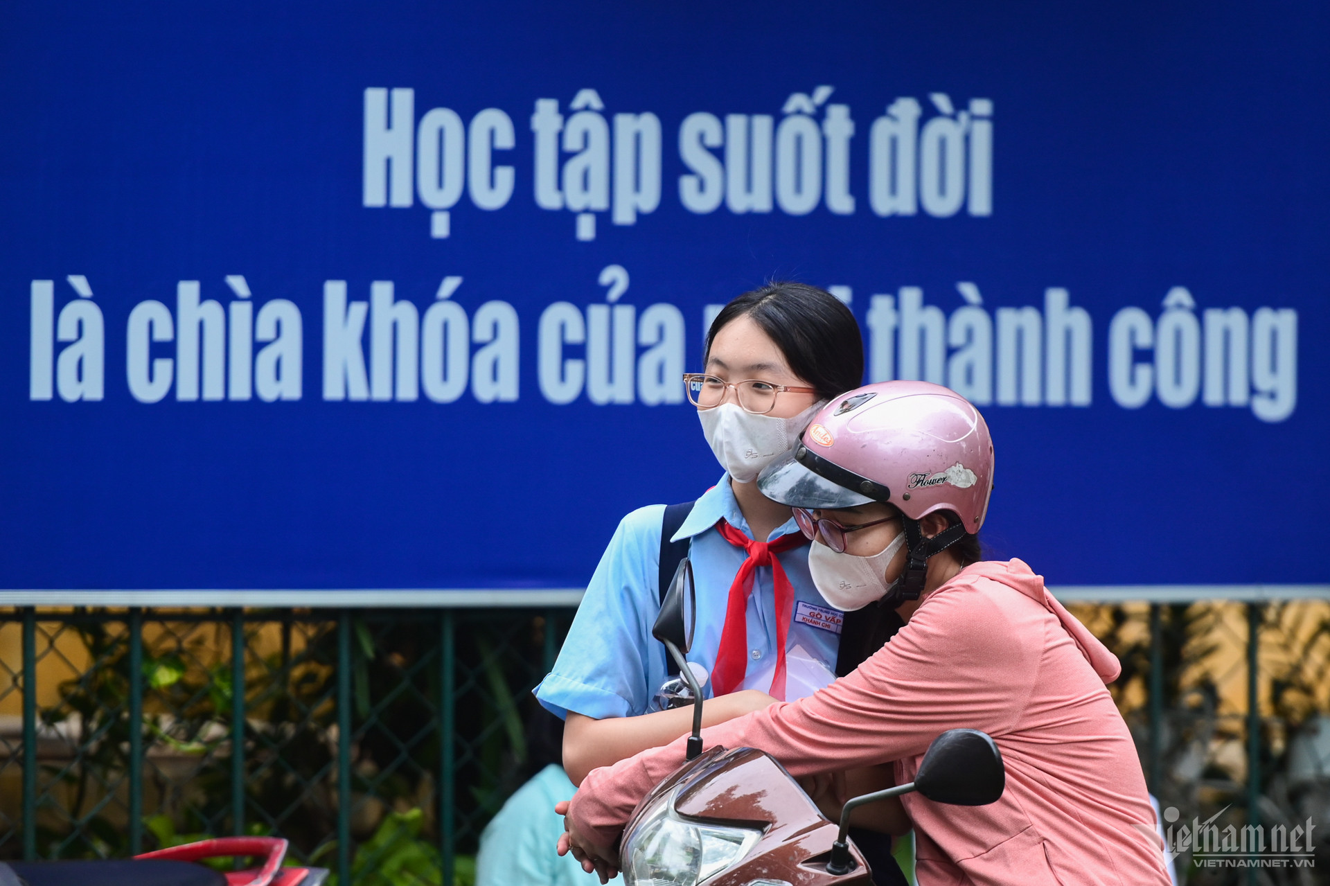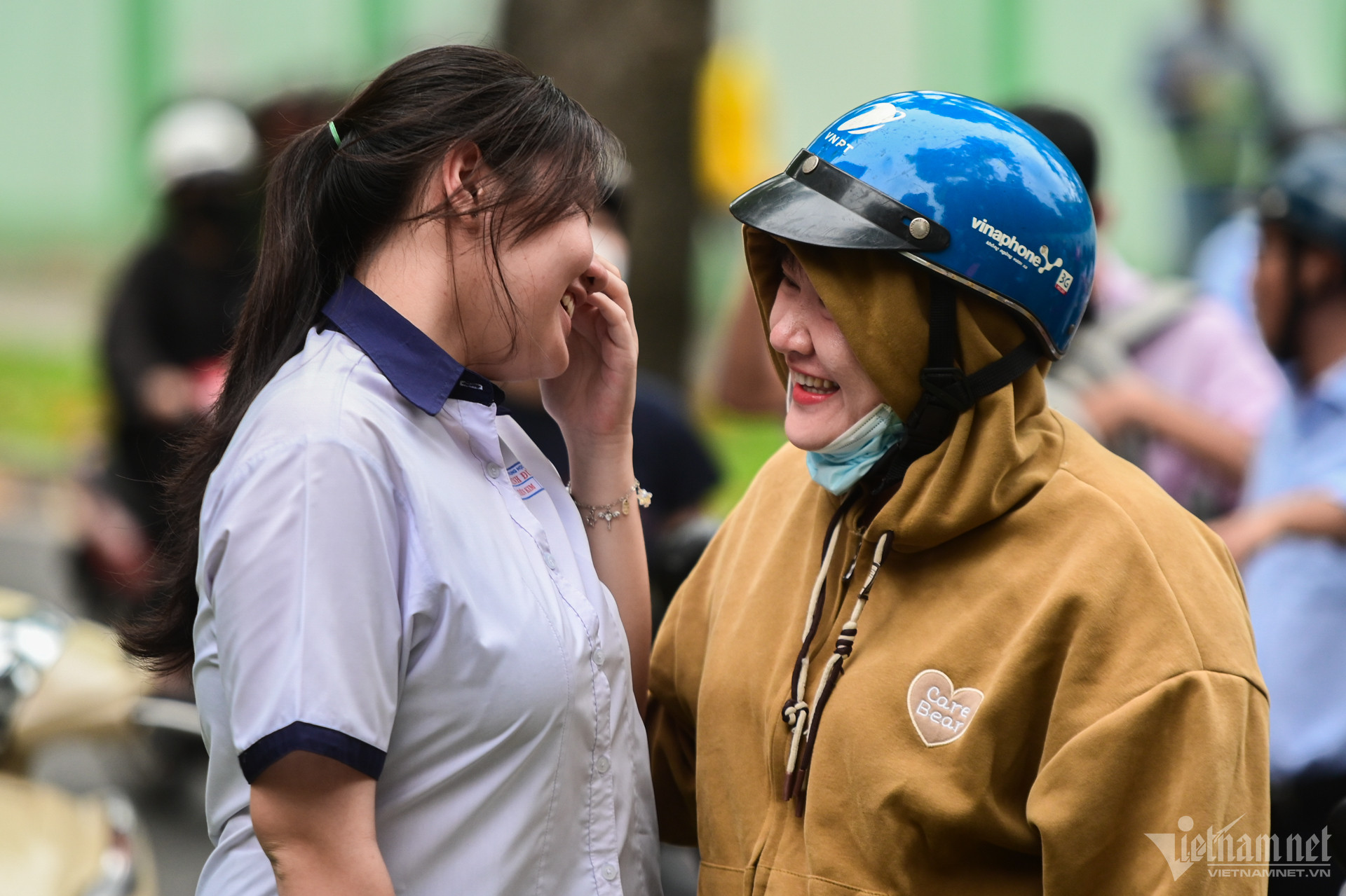 Một khoảnh khắc đáng yêu: một "người thân" đặc biệt được cùng đón chị đi thi về.