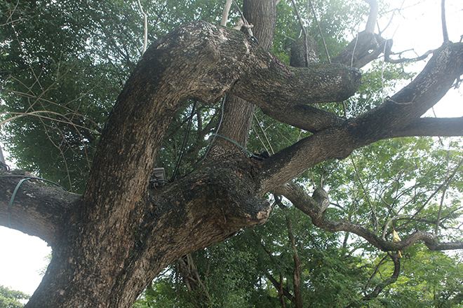 Cây sưa 100 năm tuổi này có nhiều nhánh lớn. Hiện cây vẫn phát triển bình thường, chưa có dấu hiệu bị mối mọt.
