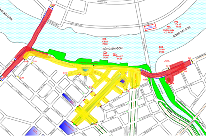 Phạm vi các tuyến đường bị cấm như sau: Đường Tôn Đức Thắng (đoạn từ Nguyễn Siêu đến Võ Văn Kiệt); đường Nguyễn Tất Thành (đoạn từ cầu Khánh Hội đến Hoàng Diệu); đường Hàm Nghi (đoạn từ Hồ Tùng Mậu đến Tôn Đức Thắng); đường Đồng Khởi (đoạn từ Mạc Thị Bưởi đến Tôn Đức Thắng); đường Hải Triều (từ đường Hồ Tùng Mậu đến Nguyễn Huệ); các tuyến đường Nguyễn Thiệp, Mạc Thị Bưởi (từ đường Đồng Khởi đến Nguyễn Huệ); các tuyến đường xung quanh vòng xoay Công trường Mê Linh gồm Ngô Đức Kế (đến đường Nguyễn Huệ); Hồ Huấn Nghiệp (đến đường Đồng Khởi), Phan Văn Đạt (đến đường Mạc Thị Bưởi), Thi Sách (đến Công trường Mê Minh); trục đường đi bộ Nguyễn Huệ, cầu Ba Son, cầu Khánh Hội.