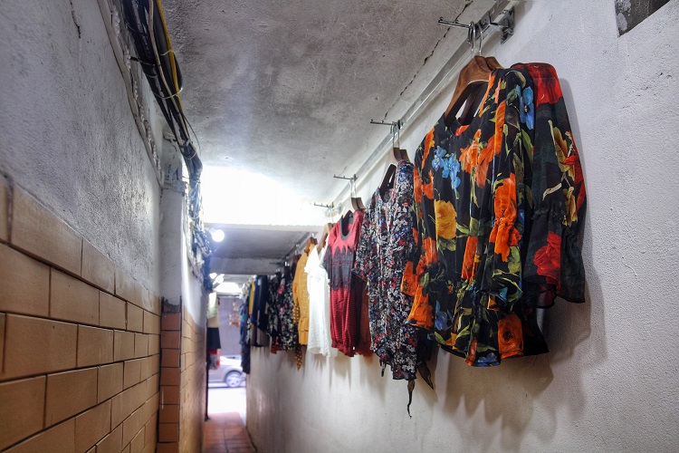 Tiểu thương ở đây sáng tạo những kiểu trưng bày quần áo “chẳng giống ai”. Theo cô Hải, một người bán hàng ở đây cho biết: Cùng một con ngõ, những người dân sống chung ở đây chia thành 3-4 ca khác nhau để thay nhau buôn bán, mỗi người bán một mặt hàng khác nhau.