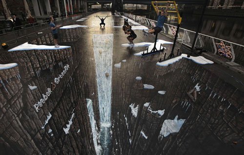 Bức tranh 3D rộng và dài nhất thế giới với chiều dài khoảng 60, 5 m và diện tích 892 mét vuông tại Canary Wharf, London.