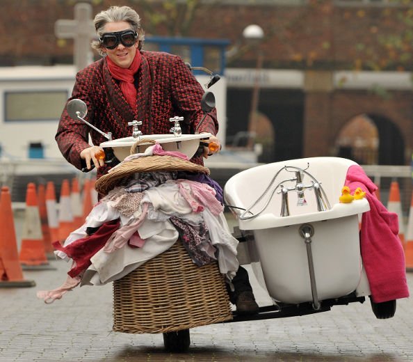 Nhà phát minh Edd China (Anh) đang cưỡi trên chiếc toilet chạy nhanh nhất thế giới với vận tốc 68 km/h.