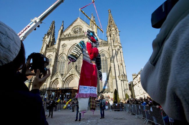 Búp bê lớn nhất thế giới (cao 10 m) được treo tại Mulhouse, phía đông nước Pháp.