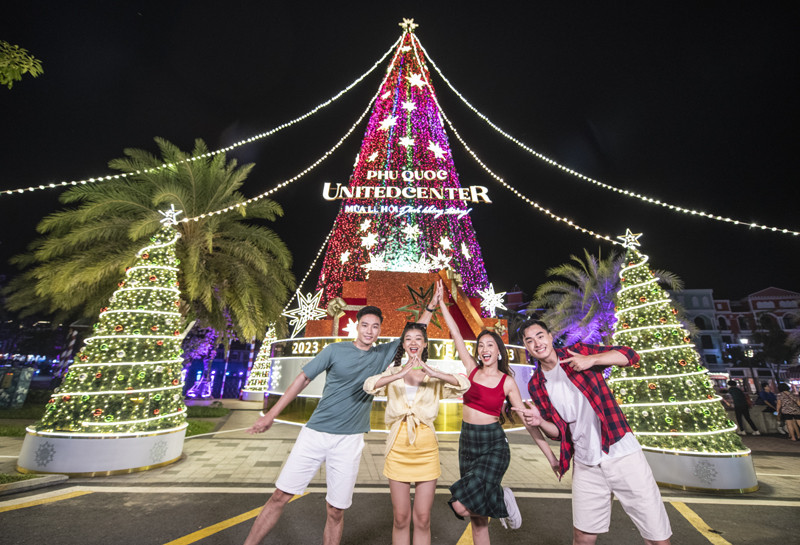 Đến với Phú Quốc United Center dịp cuối năm, du khách sẽ đắm mình trong muôn vàn góc check-in lung linh: cây thông kết từ đèn LED khổng lồ cao 23m với hệ thống đèn LED thông minh có thể thay đổi tới 20 phiên bản trong vòng 5 phút; con đường ánh sáng; Bảo tàng gấu Teddy Bear Museum; vườn treo Babylon; Tháp Đồng Hồ; show diễn nghệ thuật “Sắc màu Venice” tại “thành phố không ngủ” náo nhiệt ngày đêm Grand World; đại cảnh Giáng sinh năm châu tại các khách sạn Vinpearl...