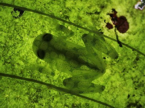 | Ếch thủy tinh có hình mắt lưới. Ảnh: Hiroya Minakuchi/Minden Pictures/FLPA |