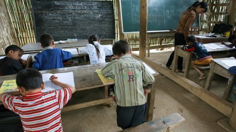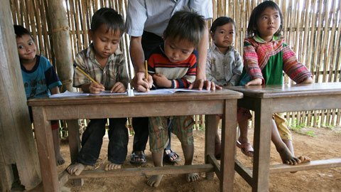 - Do bàn ghế quá cao so với khổ người, nhiều học sinh ở vùng sâu, vùng xa đã phải xoay trở đủ kiểu để có thể đọc, viết trong giờ học.