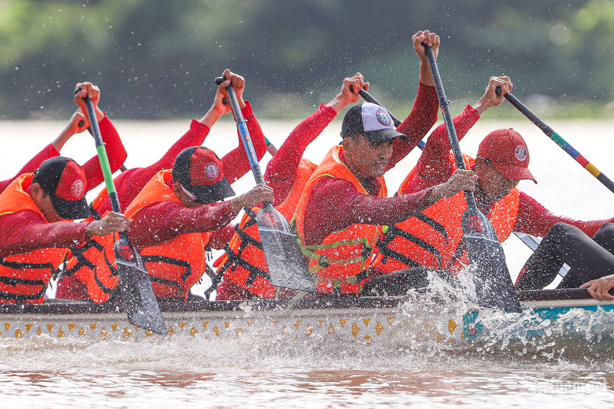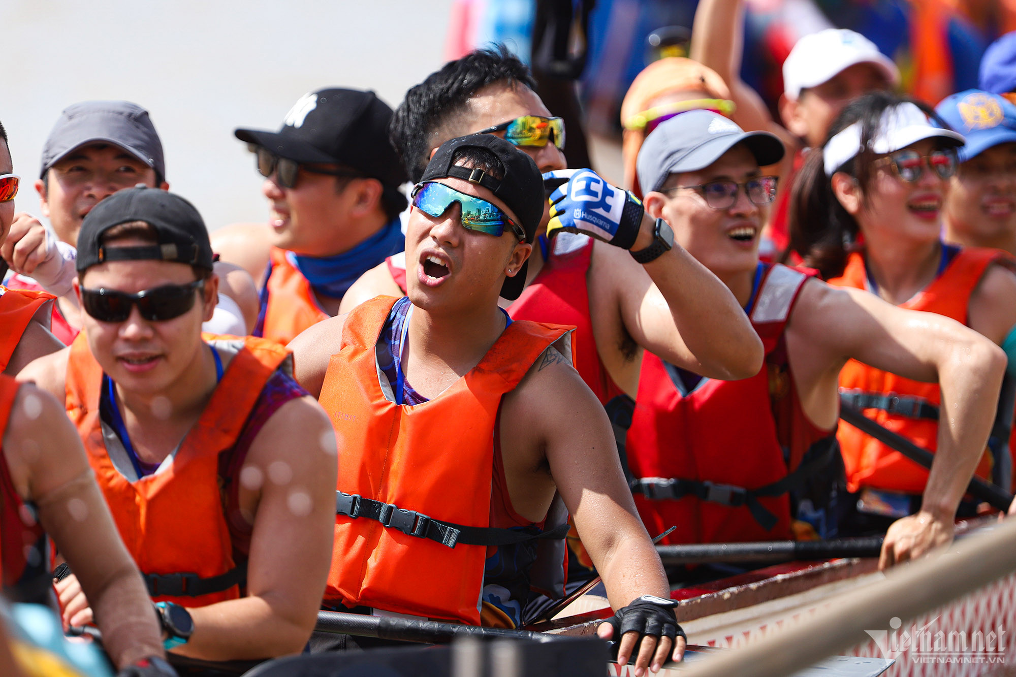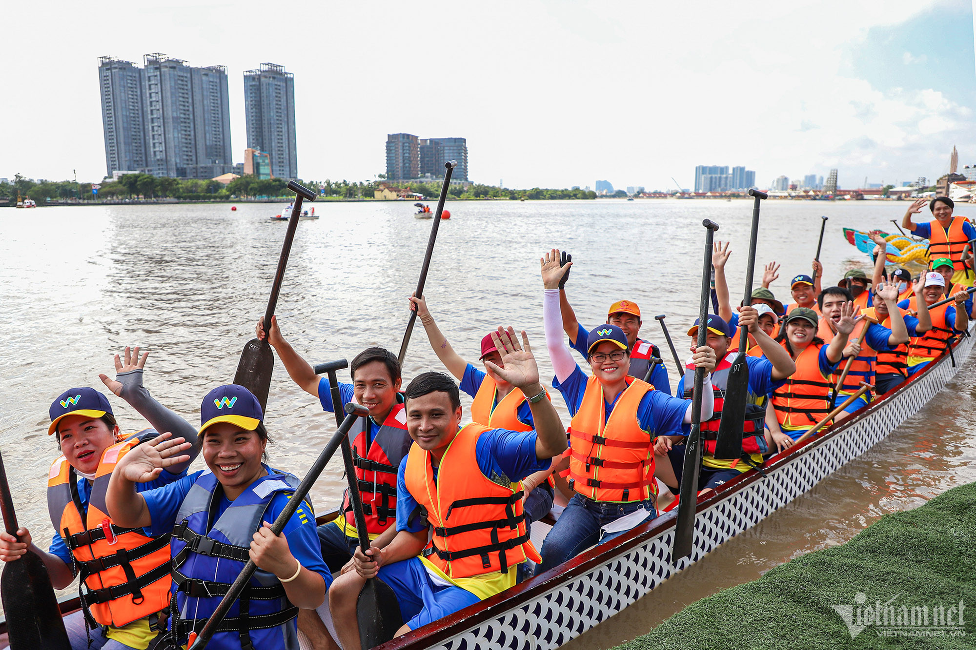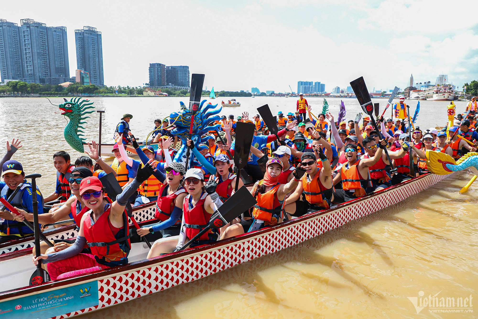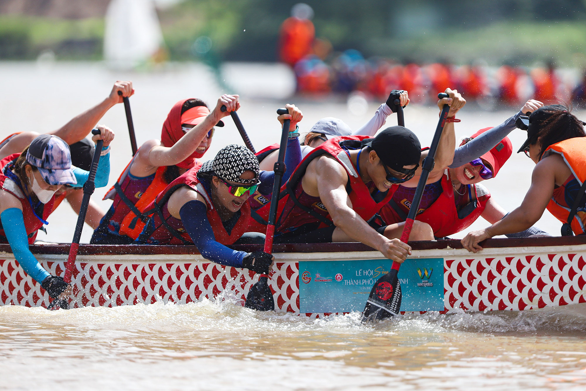 Các tay chèo vung hết sức lực để tăng tốc về đích trong tiếng hò reo cổ vũ rộn rã của khán giả, tạo không khí tưng bừng giữa Sài thành.