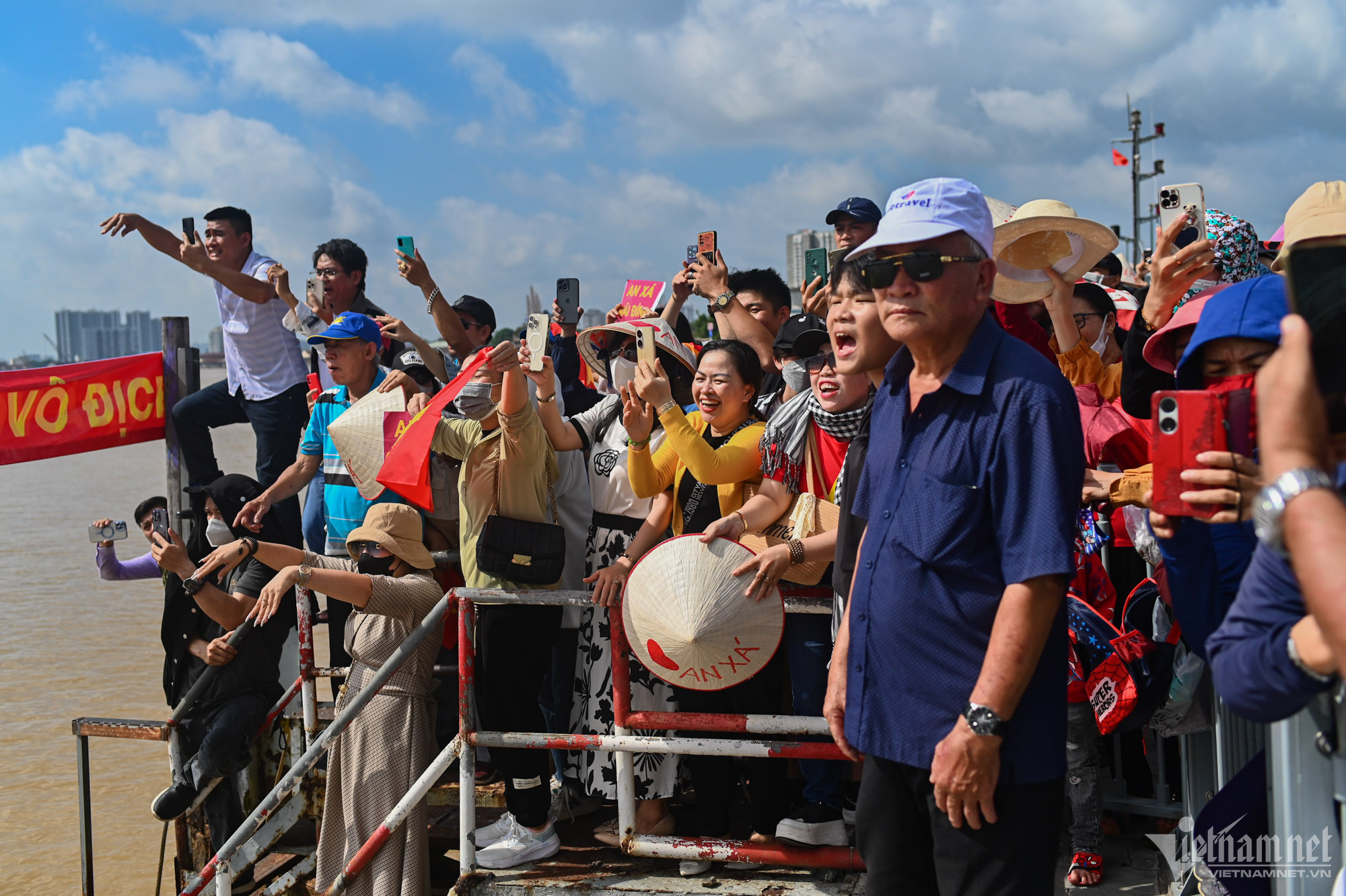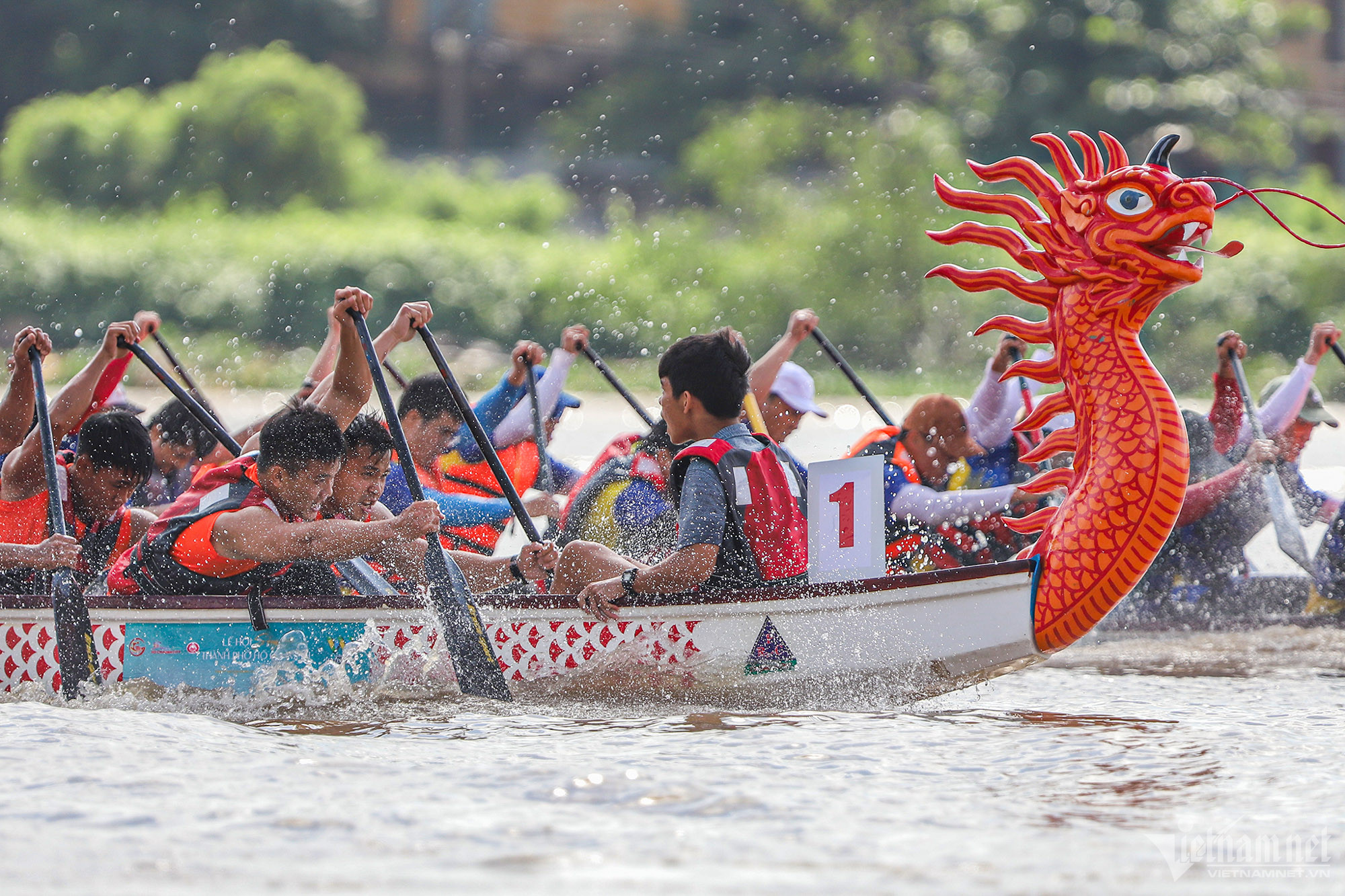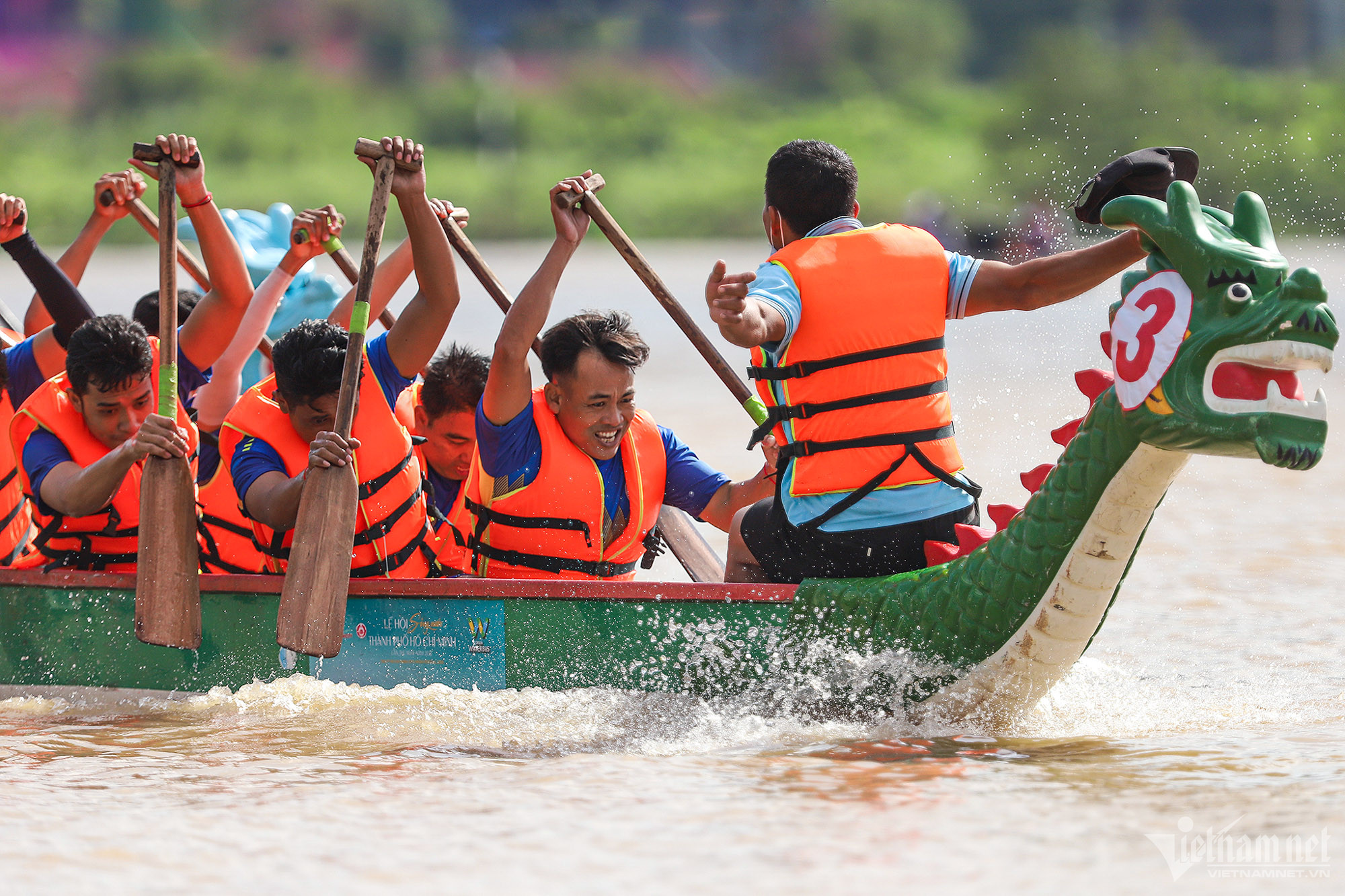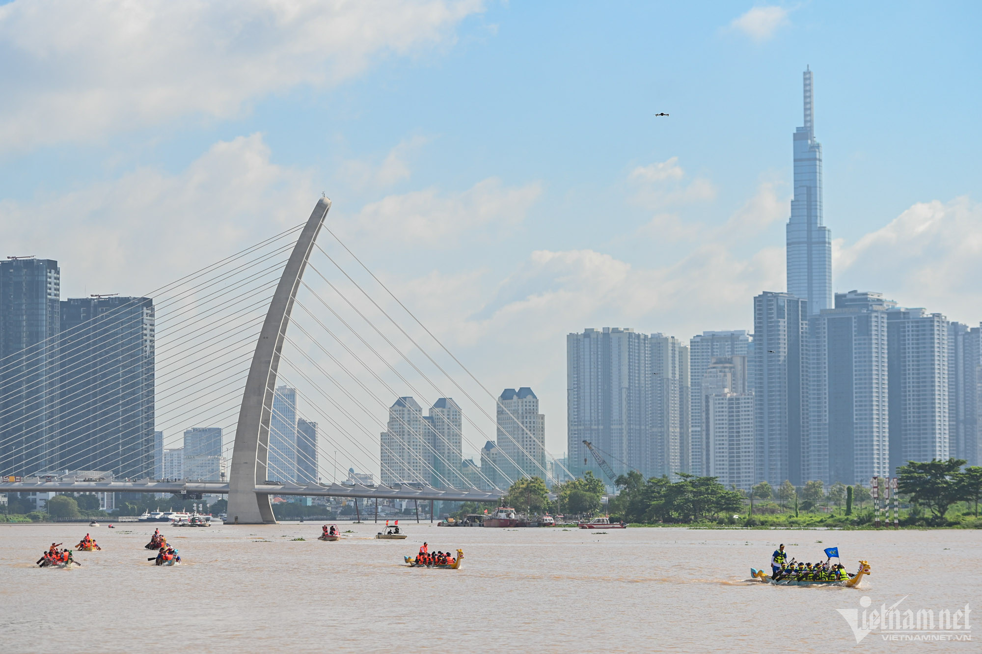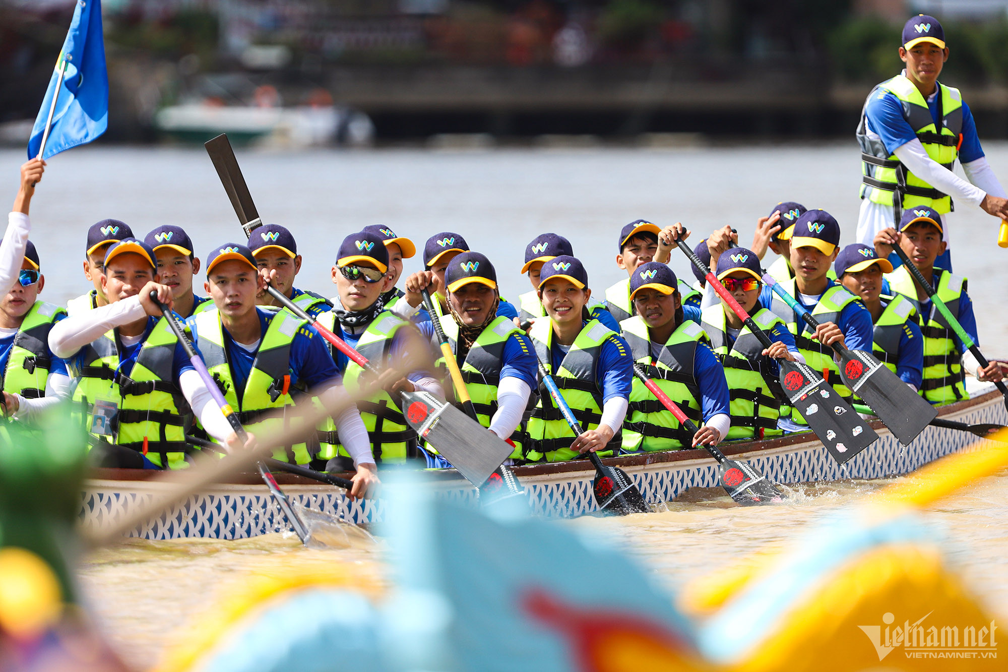 Các tay chèo vung hết sức lực để tăng tốc về đích trong tiếng hò reo cổ vũ rộn rã của khán giả, tạo không khí tưng bừng giữa Sài thành.