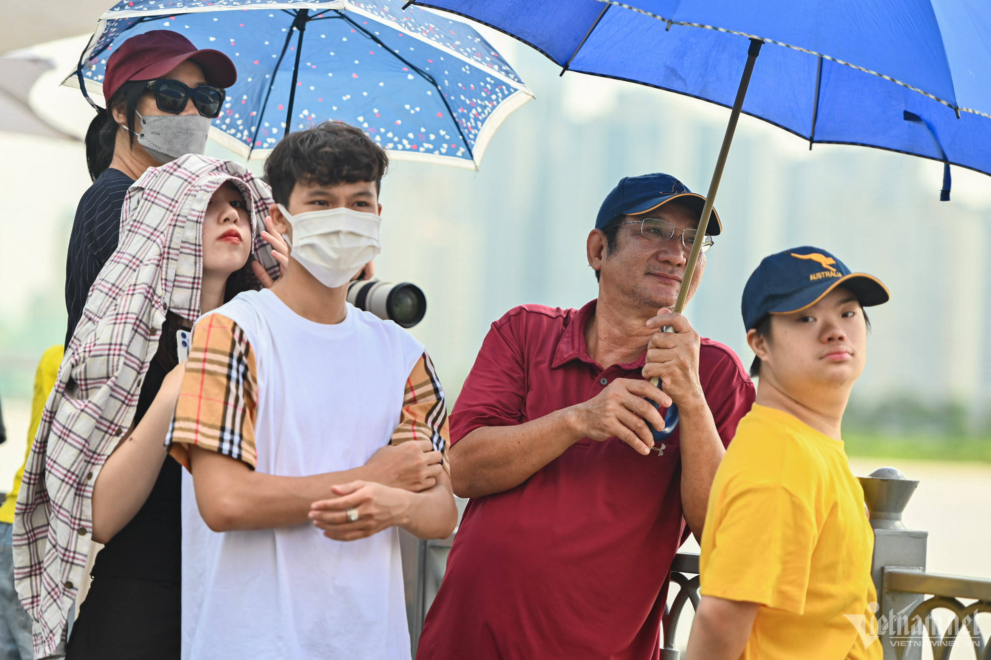Ngay từ 9h sáng, nhiệt độ khoảng 31 độ C, rất đông người đội nắng, che ô tụ tập về bên bờ sông để cổ vũ cho các đội.