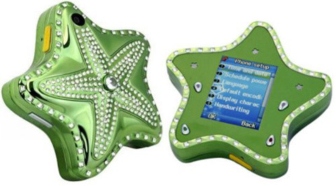 Thích hợp với những cô nàng cá tính, sành điệu, chiếc điện thoại sao biển này được găn tương đối nhiều đá quý. Kích thước của nó cũng rất nhỏ gọn, thích hợp để bỏ vào mọi loại túi xách.