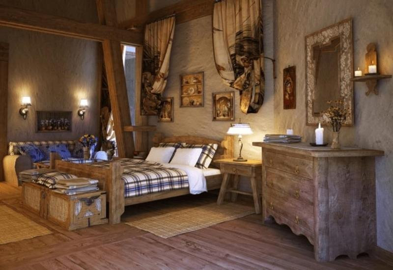 Trang trí phòng ngủ phong cách Vintage bằng bức tường gỗ mộc mạc cùng những bức tranh có họa tiết cổ điển là một ý tưởng tuyệt vời.