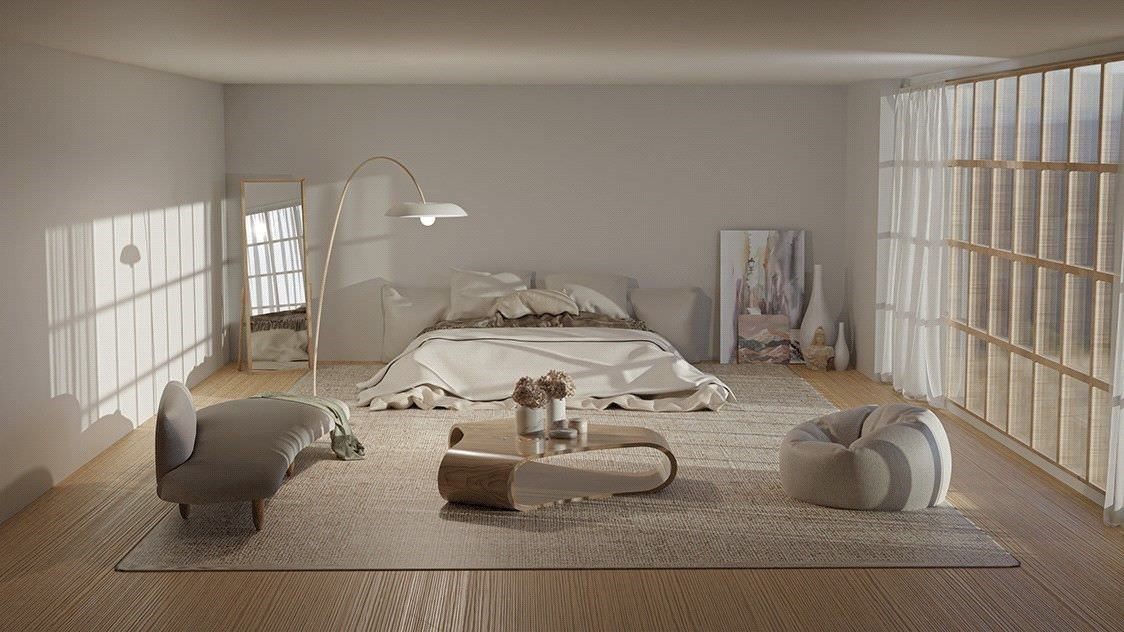 Phòng ngủ tối giản kiểu Nhật hạn chế sử dụng quá nhiều đồ nội thất, chỉ bố trí những món đồ cơ bản và kiểu dáng thấp, đặc biệt là giường bệt hoặc thậm chí là phòng ngủ không cần giường làm cho căn phòng thông thoáng, rộng rãi hơn.