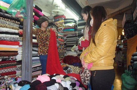 Chị Thoa Ánh, quầy hàng vải 155, chợ Hôm (Hà Nội) chia sẻ: “Mấy ngày nay, chúng tôi đi chợ cho vui thôi. Lượng khách dồn cả vào tháng trước rồi. Lúc đấy xé vải không kịp, giờ thì ngồi trên tầng nhìn xuống dưới hàng giầy dép xem họ hét khách thôi.