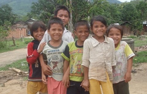 | Hai đứa con sinh đôi của chị Hồ Thị Ngọc (ngoài cùng bên phải) khỏe mạnh. Chị Ngọc bảo: Tui đã bước qua được lời nguyền. (Ảnh: L.H.Anh). |