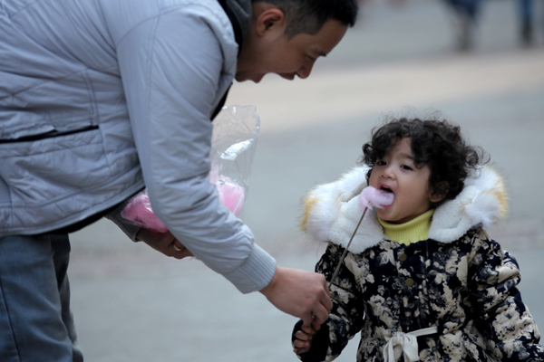 Hai cha con tại sân Cung Thiếu Nhi Hà Nội trong "Ngày hội yêu thương".