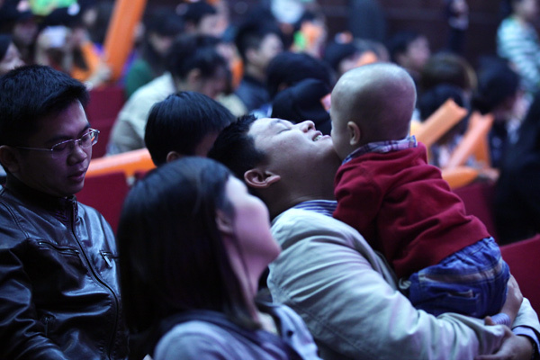 Hàng trăm gia đình đã đến Cung Văn hóa Thiếu nhi Hà Nội để tham dự và cổ vũ cuộc thi "Người cha trách nhiệm".